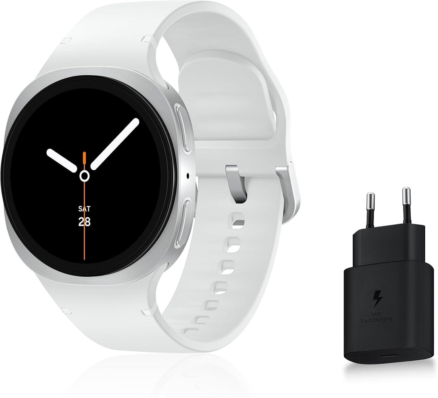 | Contenu du carton | Galaxy Watch8 – 40mm BT, Bracelet sport silicone (S/M), Chargeur sans fil USB-C, Chargeur secteur rapide 25W, Notice d’utilisation |